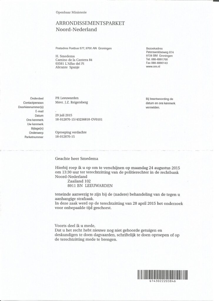 Dagvaarding 24 augustus 2015 13.30 uur!