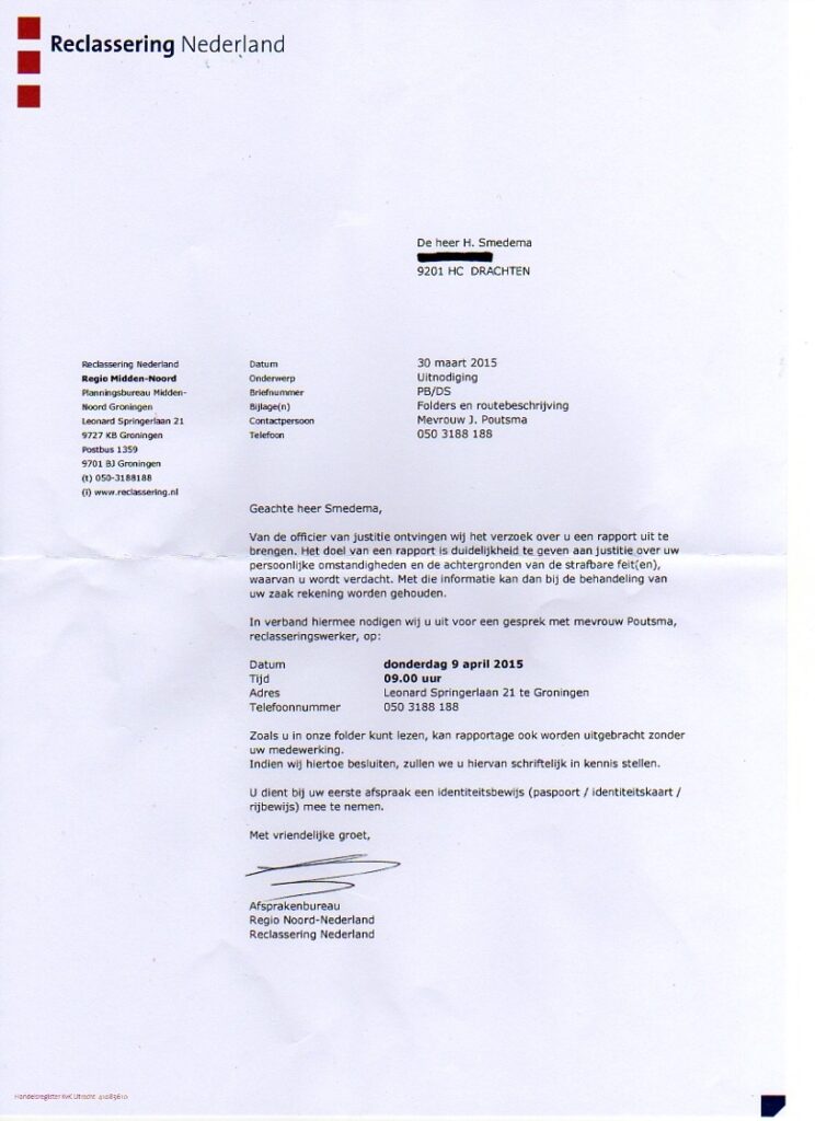 Uitnodiging Reclassering Nederland