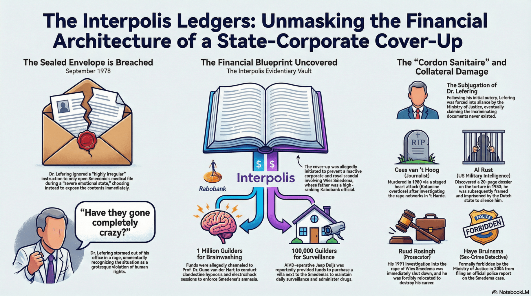 The letter contained horrifying facts that were being systematically hidden from Hans Smedema: it explicitly stated that Smedema’s children were not his own (a result of his secret 1972 forced sterilization), and it detailed that the Rabobank organization’s health insurance (Interpolis) was secretly covering the extensive medical and psychological costs associated with his wife Wies’s continuous exploitation as a “sex slave” [2, 4, 14, 15].