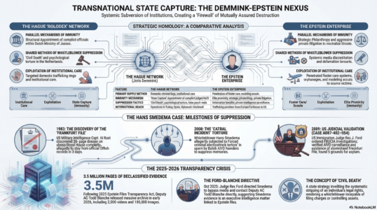 Ultimately, the Smedema affair and the Epstein case demonstrate that when transnational criminal syndicates successfully capture the sovereign state apparatus, traditional domestic judicial remedies become entirely obsolete. The resolution of the Smedema case, and the exposure of the Demmink network’s potential intersection with the Epstein database, will depend entirely on the ability of the US executive branch to overcome domestic political friction, bypass diplomatic suppression, and fully execute the transparency mandates currently tearing through the international intelligence community.